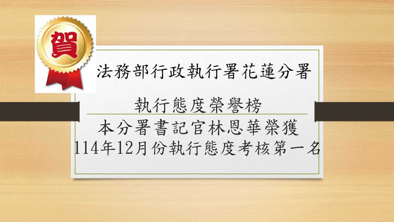 - 2 榮譽榜-114年12月執行態度評比第一名