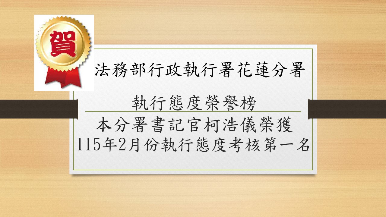 - 1 榮譽榜-115年2月執行態度評比第一名